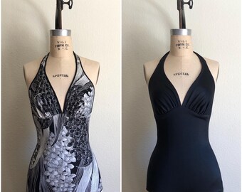 Vintage 1960s-1970s Floral Reversible One-Piece Swimsuit | XS-S